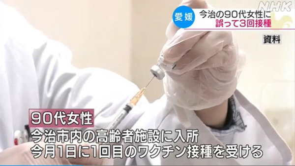 據今治市政府透露,該女性居住在市內的老人看護設施,曾在5月1日接種了第一劑疫苗。隨后,她因身體抱恙被送入醫療機構接受治療。醫療機構在沒有詳細確認疫苗接種預約票以及向該女性問診是否接種過疫苗的情況下,相繼于5月21日和24日,接連為該女性接種了兩劑疫苗。