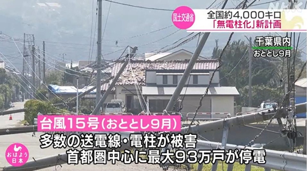2019年9月,日本千葉縣遭受15號強臺風襲擊,多數電線桿受損,導致首都圈93萬戶家庭停電。日本國土交通省以防災對策與改善街道景觀為目的,持續推進著電線埋入地下并撤除電線桿的“無電線桿化”計劃。此次,該計劃中又加入了重點推進“無電線桿化”的區間以及數值目標等內容。