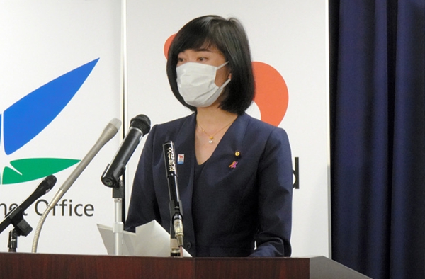 日本奧運大臣丸川珠代出席記者會。(圖片來源:《朝日新聞》)