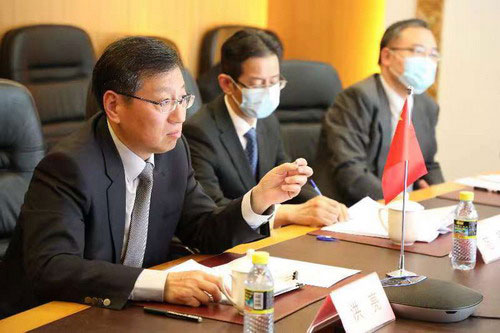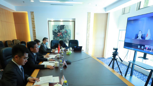 2021年6月3日,外交部邊界與海洋事務司司長洪亮同日本外務省亞洲大洋洲局局長船越健裕以視頻方式共同主持中日海洋事務高級別磋商團長會談。