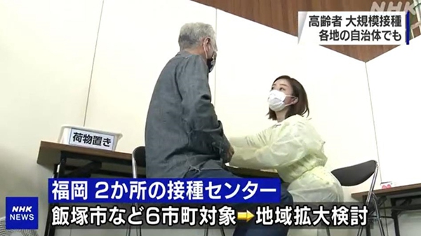 據報道,當地還為到福岡縣立大學預約接種疫苗的老人安排了免費巴士,可就近接送。