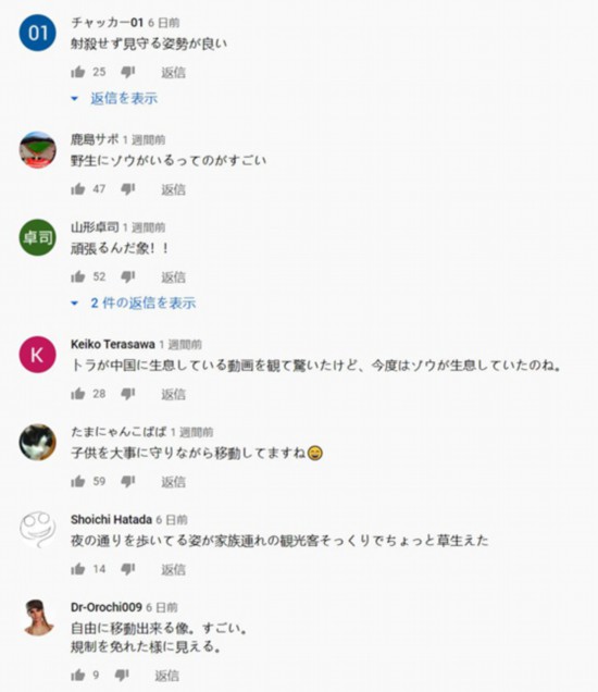 富士新聞網在視頻平臺YouTube上對云南北遷象群進行報道后,日本網友熱情留言。