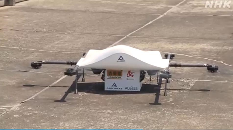 無人機將吉野家牛肉飯平穩送抵約5公里外目的地。(NHK視頻截圖)