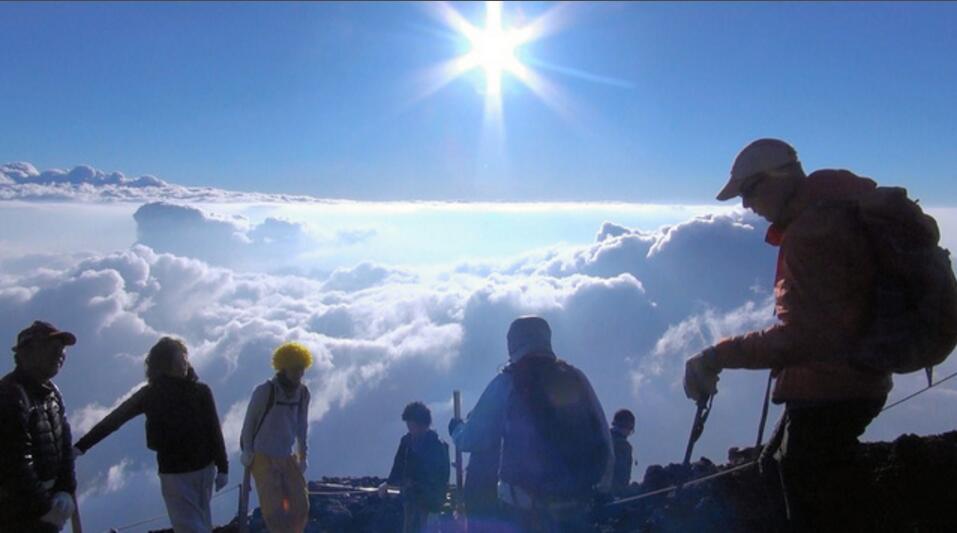 富士山頂的登山客。(圖片來源:《朝日新聞》網站)