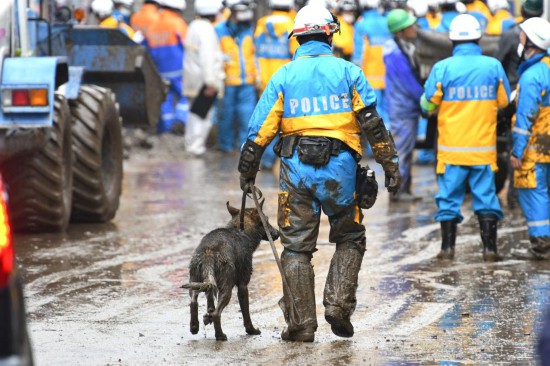 從昨夜到今晨,小雨不斷,搜救工作緊張進行著。記者從電視畫面看到,當地警方和消防部門3日深夜冒雨在激流中搜救幸存者。4日上午6時左右,來自警察、消防、自衛隊等部門的約1000人開始搜救行動。天空中,直升機和無人機在不停盤旋。附近海上,日本海上保安廳的船只和潛水員也在尋找著失蹤人員。