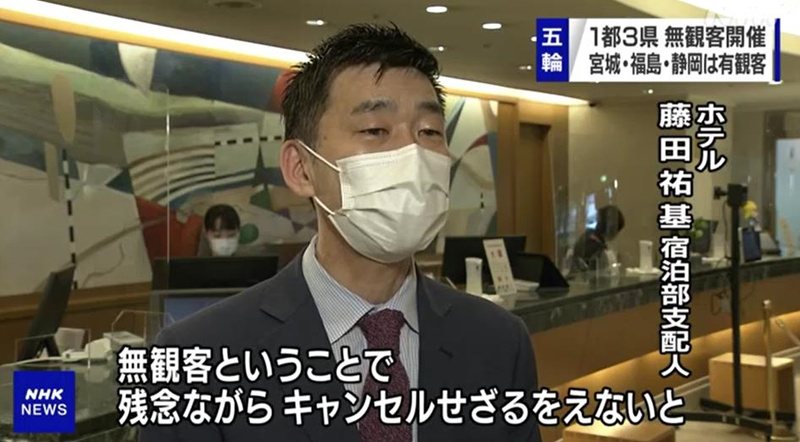 然而,日本政府7月8日晚卻宣布,東京都將第4次進入緊急狀態,實施期限從7月12日至8月22日,并將埼玉縣、千葉縣和神奈川縣的“防止蔓延等重點措施”同步延長至8月22日。與此同時,日本政府還宣布,東京奧運會在東京都、神奈川縣、千葉縣、埼玉縣的賽事,原則上以無觀眾形式舉辦。之后,該酒店陸續收到取消訂單的聯絡,單日最多可達10余件。