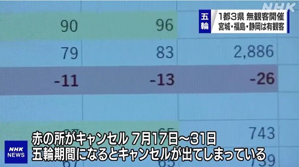 一家位于東京都墨田區的酒店在奧運期間的客房訂單陸續被取消。(NHK電視臺視頻截圖)