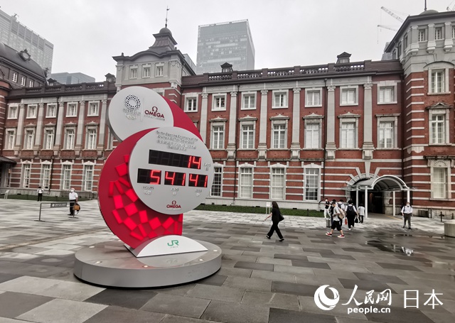 7月9日,東京站前的奧運會開幕式倒計時電子鐘。(吳穎 攝)