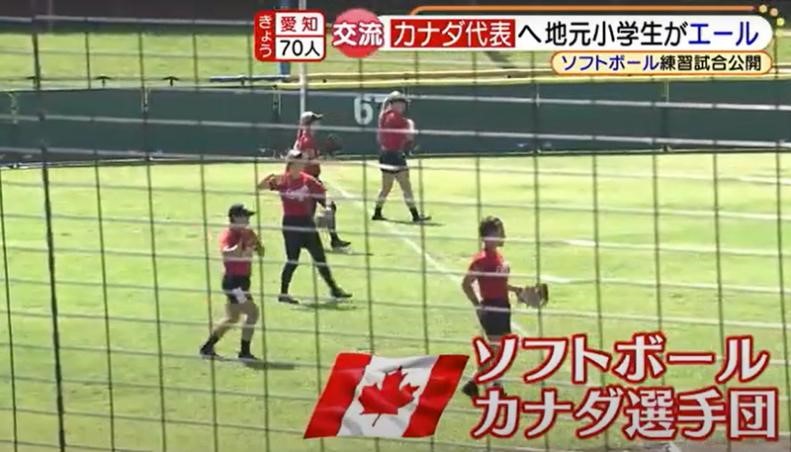 13日,加拿大壘球代表隊在日本愛知縣安城市進行賽前集訓。(名古屋電視臺視頻截圖)