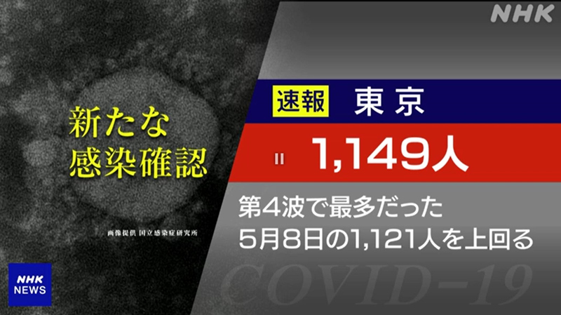 人民網東京7月15日電(李沐航)據NHK電視臺報道,東京都14日新增新冠肺炎確診病例1149例,超過了今年“第四波疫情”爆發時的單日新增最高值1121例(5月8日)。