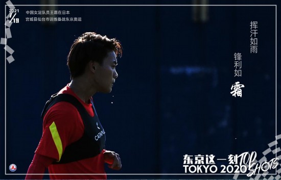 7月19日,中國女足隊員王霜在在日本宮城縣仙臺市訓練,備戰21日東京奧運會女足小組賽F組首場對陣巴西隊的比賽。新華社記者 逯陽 攝 制圖:雒圓
