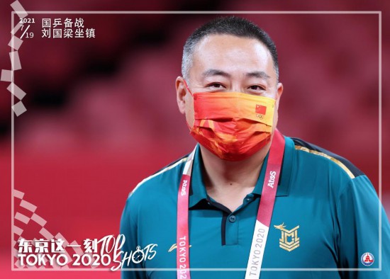7月19日,中國乒乓球隊在東京體育館進行賽前訓練,這是中國乒乓球協會主席劉國梁在訓練現場。新華社記者 王東震 攝 制圖:馬平