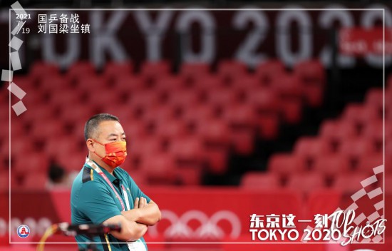 7月19日,中國乒乓球隊在東京體育館進行賽前訓練,這是中國乒乓球協會主席劉國梁在訓練現場。新華社記者 王東震 攝 制圖:馬平