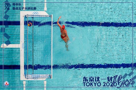 7月19日,南非奧運代表隊的一名女子水球隊員在東京進行賽前訓練。新華社記者 徐子鑒、陳益宸 攝 制圖:雒圓