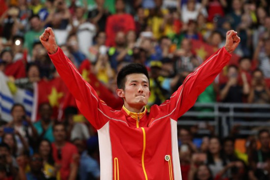 2016年8月20日,中國選手諶龍在里約奧運會羽毛球男單頒獎儀式上。