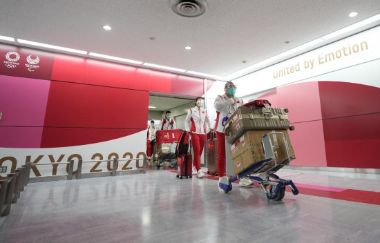 7月18日,中國羽毛球協會主席張軍(前)抵達東京成田機場。新華社記者 李一博 攝