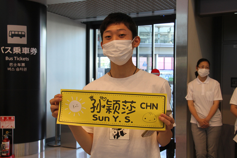 植田琉圣在東京成田機場迎接中國乒乓球代表隊。(李沐航 攝)