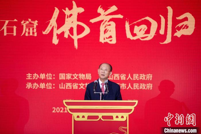 當日,天龍山石窟佛首回歸儀式在山西太原舉行,流失海外近百年的天龍山石窟“第8窟北壁主尊佛首”終歸故土。