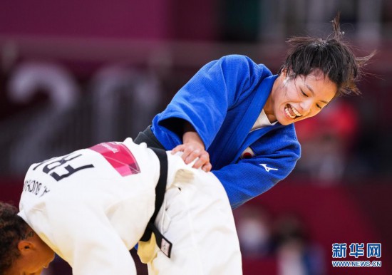 當日,在東京奧運會柔道女子52公斤決賽中,日本選手阿部詩戰勝法國選手阿芒迪娜獲得冠軍。
