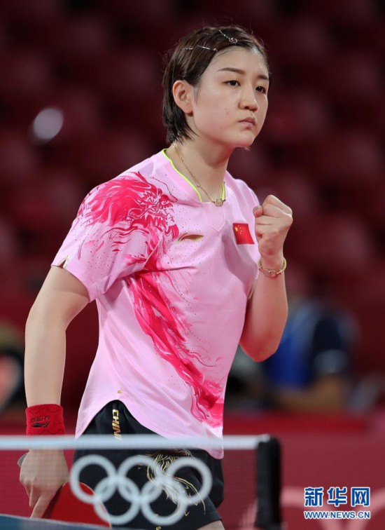 當日,在東京奧運會乒乓球女子單打半決賽中,中國選手陳夢以4比0戰勝新加坡選手于夢雨,晉級決賽。新華社記者 王東震 攝