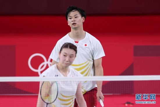 7月29日,日本組合渡邊勇太(上)/東野有紗在比賽中。新華社記者 楊磊 攝