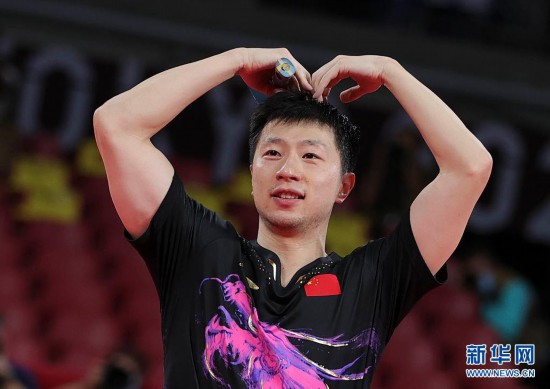 7月30日,馬龍在比賽中慶祝得分。新華社記者 王東震 攝