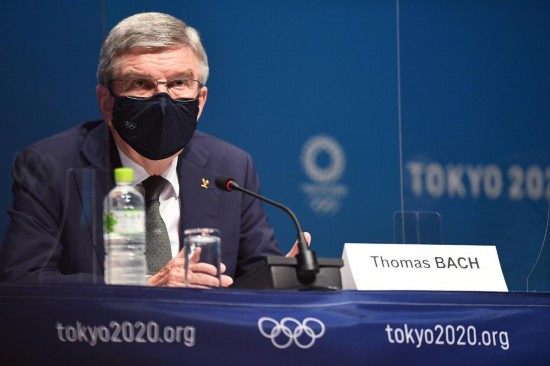 7月21日,國際奧委會主席巴赫參加新聞發布會。新華社記者宋彥樺攝