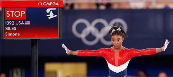7月27日,美國隊選手西蒙·拜爾斯在跳馬項目比賽中。新華社記者王麗莉攝