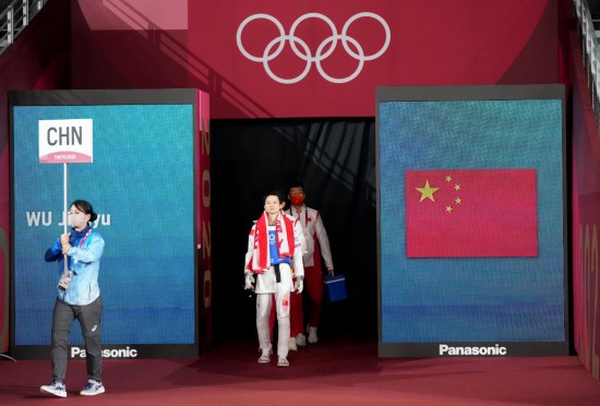 7月24日, 中國選手吳靜鈺(中)出場。新華社記者王毓國攝