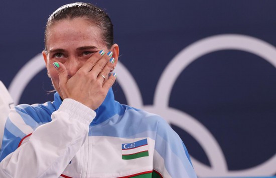7月25日,丘索維金娜在比賽后流淚。新華社記者曹燦攝
