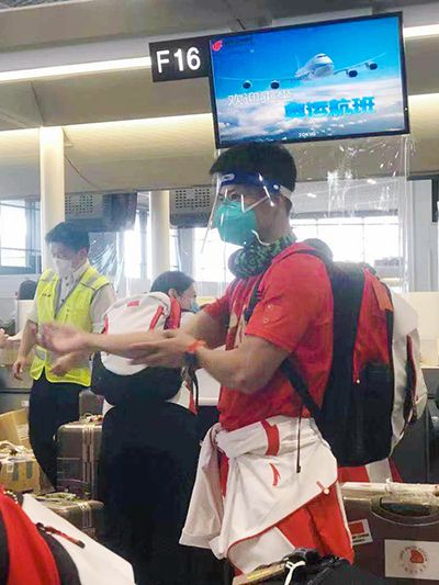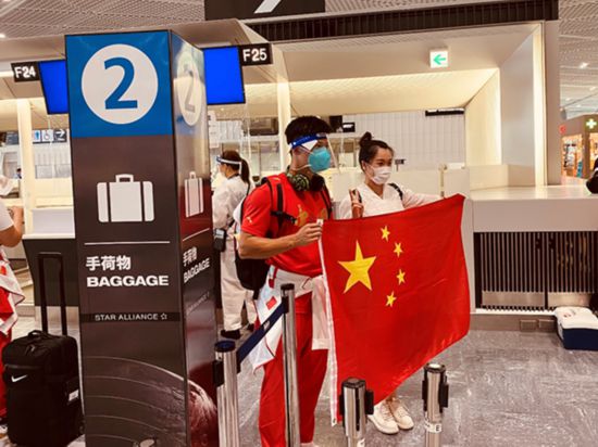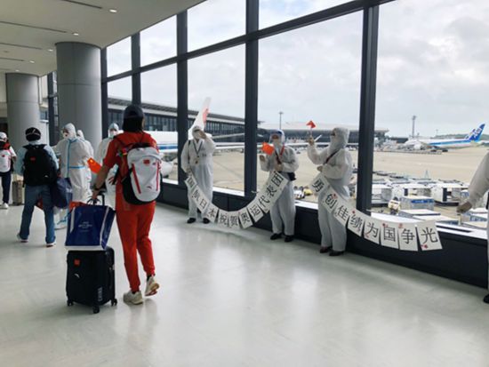 國航工作人員在成田機場歡送中國體育代表團歸國。東京成田機場工作人員供圖