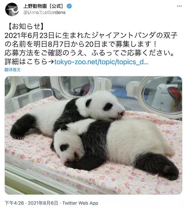據介紹,名字征集活動從7日上午9點半開始,上野動物園等地會設置征集箱用來收集大家想出來的名字,人們也可以選擇在網上應征。