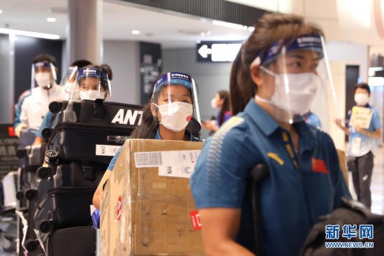 8月19日,中國殘奧代表團成員抵達東京成田機場。新華社記者 杜瀟逸 攝