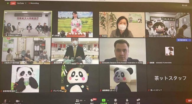 8月19日,駐大阪總領館同河南省文化和旅游廳、大阪府日中友好協會、京都府和束町日中文化交流會共同舉辦“巡禮世界茶文化”在線交流活動。駐大阪總領事薛劍、河南省文化和旅游廳廳長姜繼鼎、大阪府日中友好協會會長梶本德彥、和束町日中文化交流會會長松岡保、駐大阪俄羅斯聯邦總領館相關人員在線出席活動。日本“茶友”、領區多地政府國際課及主流媒體等共計1400余人在線參加。