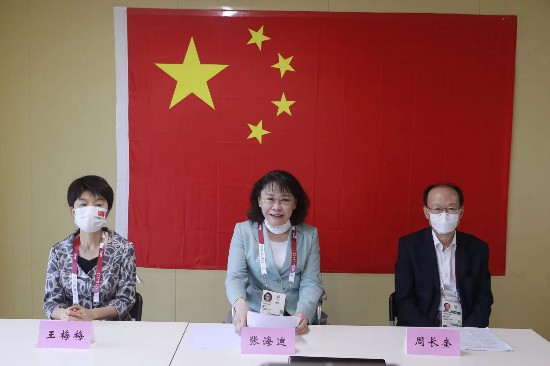 2021年8月23日下午,中國駐日本大使孔鉉佑與參加東京殘奧會的中國體育代表團團長張海迪、執行團長周長奎以及運動員代表、殘奧冠軍盧冬、張麗等視頻連線。使館楊宇公使、施泳公使在座。