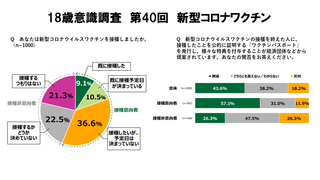 另一方面,一些日本經濟團體提出了疫苗護照的方案,即向完成疫苗接種的人發放相關證書,以防止感染擴大,推動經濟、社會活動正常運轉。目前,法國發行的“衛生護照”、意大利、奧地利的“綠色護照”都是這種疫苗護照。調查結果顯示,43.6%對這種疫苗護照表示贊成, 18.2%表示反對,其余受訪者表示“不好說,不知道”。