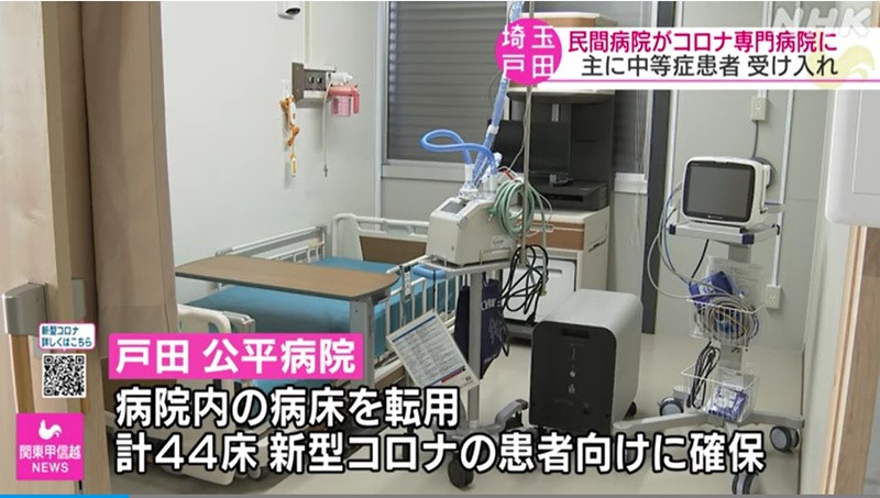 位于日本埼玉縣戶田市的“公平醫院”8月末改建為新冠肺炎?漆t院,在日本同類醫院中規模最大。(NHK電視臺視頻截圖)