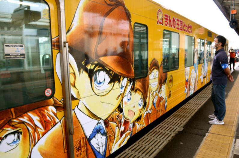 該主題列車從2012年開始運行,最初是為紀念“鳥取漫畫王國”的成立,之后于2015年推出了“粉色車廂”,車內柯南與怪盜基德的圖案一直保留到本月上旬。