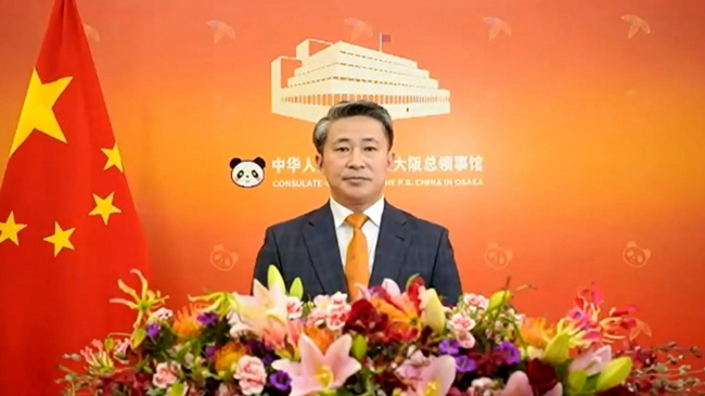 9月29日,駐大阪總領事薛劍在線發表了題為《砥礪前行,奮楫破浪,共創千秋偉業》的致辭。(圖片由中國駐大阪總領館提供)
