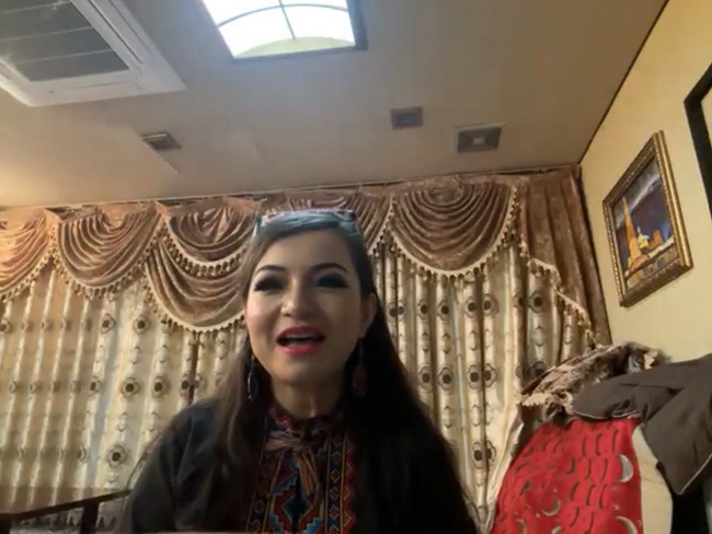 9月29日,新疆籍維吾爾族僑胞加米拉代表領區僑界在線致辭。(圖片由中國駐大阪總領館提供)