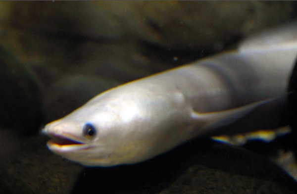 “白色鰻魚”全身長約60厘米,發現于德島縣的一家鰻魚養殖場。養殖場主人為了讓更多人能看到這條白色鰻魚,就將其和7條黑白斑紋的“熊貓鰻魚”一起送給了水族館。這家養殖場內大約有500萬條鰻魚,這還是首次發現有通體白色的鰻魚出現。
