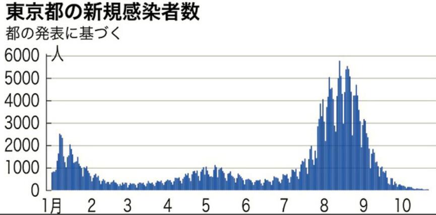 東京都最近半年間的新增確診病例數變化趨勢圖。(圖片來源:《朝日新聞》)