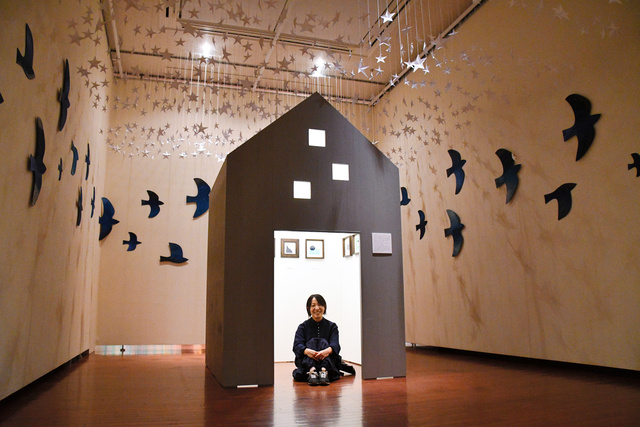 插畫師幸田洋子(音)在現場展示了她速寫本上的繪畫。這些畫當初被用于熊本地震后安撫災民的心情。作品點綴在一道暖光穿過的小屋中,天花板上灑下許多顆星星,數量與東日本大地震中失蹤的人數相同。幸田洋子談到了她被恐懼所包圍的感受:“地震的時候,一到天黑就有震感,我心里總有一種莫名其妙的恐懼感。不過,我也欣賞到了美妙的夜晚,天空中有明亮的月光與眨眼的星星!