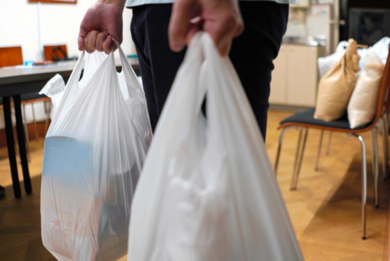 一名大學生從“牡丹兒童食堂”領取了兩大袋食物。(圖片來源:《朝日新聞》)