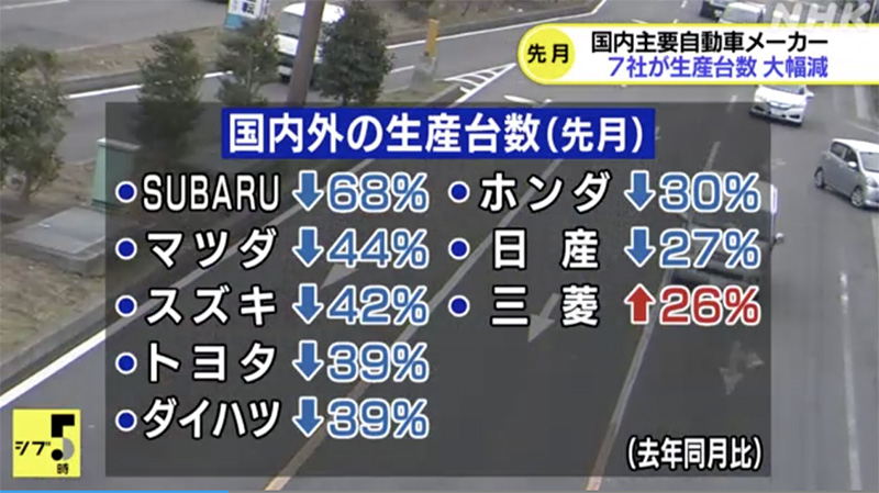 2021年9月,三菱汽車之外的7家大型汽車制造商的產量同比大幅下滑。(NHK電視臺視頻截圖)