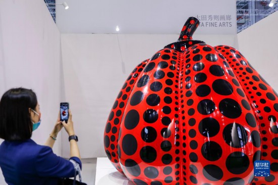 11月5日,觀眾在展館內參觀拍攝日本藝術家草間彌生的作品《南瓜》。新華社記者 張玉薇 攝