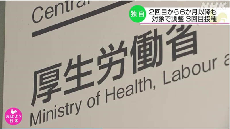 日本厚生勞動省著手開展第三劑新冠疫苗接種工作。(NHK電視臺視頻截圖)