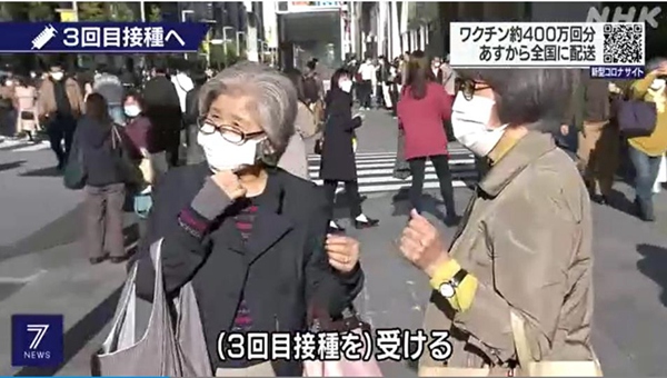 日本民眾在采訪時表示希望接種第三劑新冠疫苗。(NHK電視臺視頻截圖)