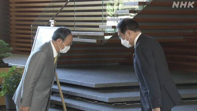 日本首相岸田文雄(右)與前首相菅義偉(左)舉行會談。(NHK電視臺視頻截圖)