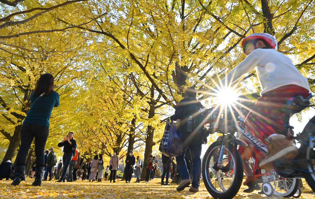 東京昭和紀念公園的銀杏樹迎來最佳觀賞期。(圖片來源:《朝日新聞》)